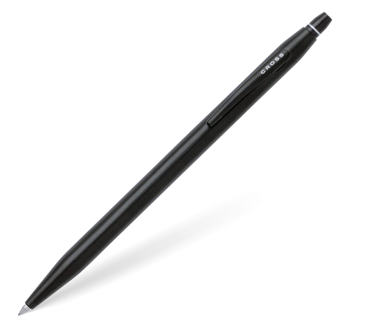 La pluma es negra con clip negro con fino cuerpo delgado.